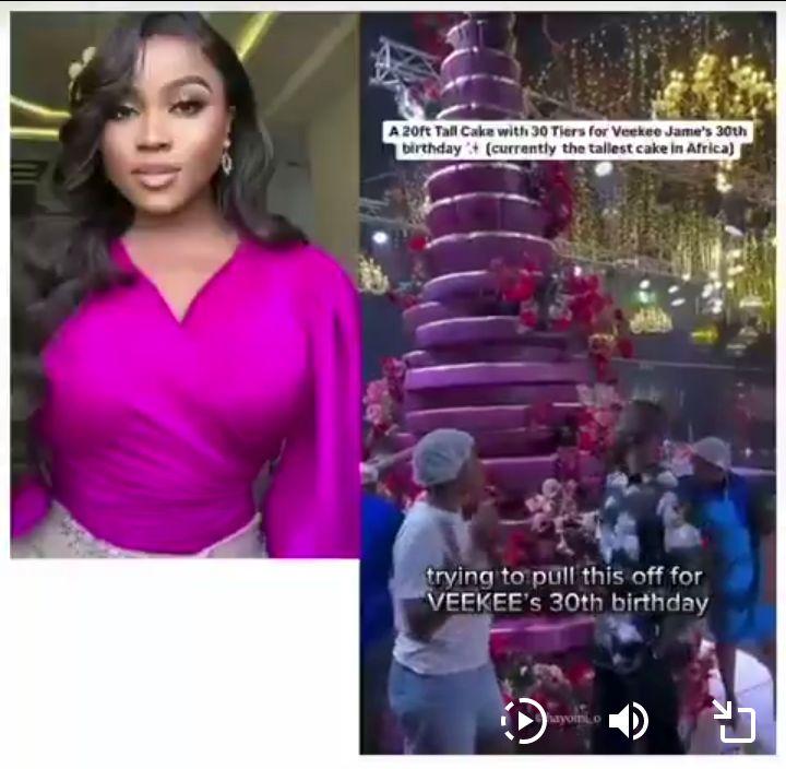 Veekee James no come play! 😮‍💨 Her 30th birthday cake is reportedly the tallest in Africa and it cost a whopping ₦18 million! 🎂🔥 Na cake or duplex?!