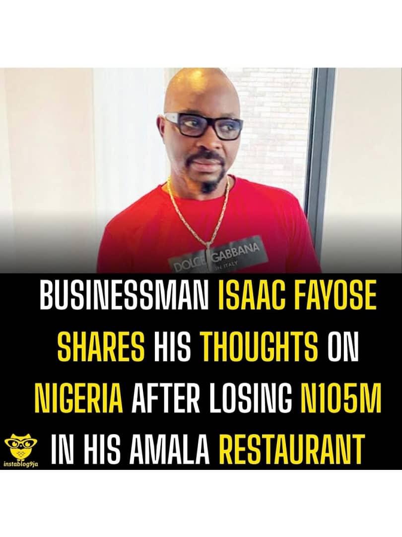 • Businessman Isaac Fayose shares his thoughts on Nigeria after losing N105m in his Amala Restaurant.