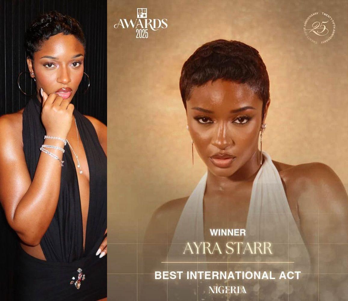 Singer Ayra Starr wins her first BET Award for Best International Act.