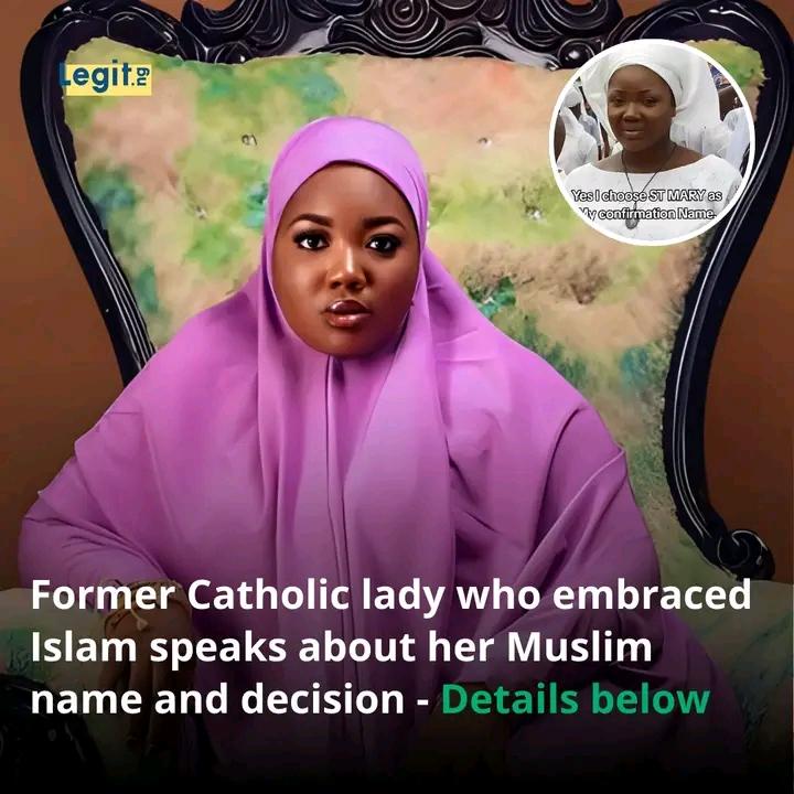 • A lady who left Catholicism and became Muslim has commented on her decision to leave Christianity. She shared her confirmation name when she was in the Catholic church and her name now. Details are in the comments.