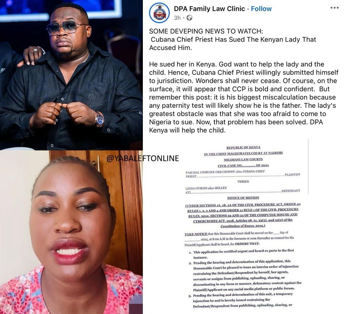Lawyer claims Cubana Chief Priest has taken Hellen Ati to a Kenyan court over defamatory online posts.