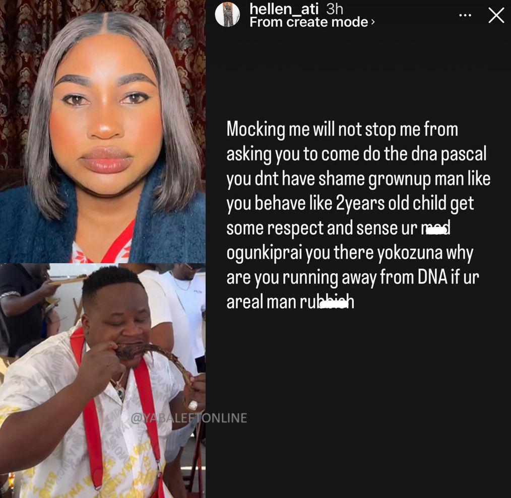 "Mocking me will not stop me from asking you to come do the DNA" - Hellen Ati responds to Cubana Chief Priest.
