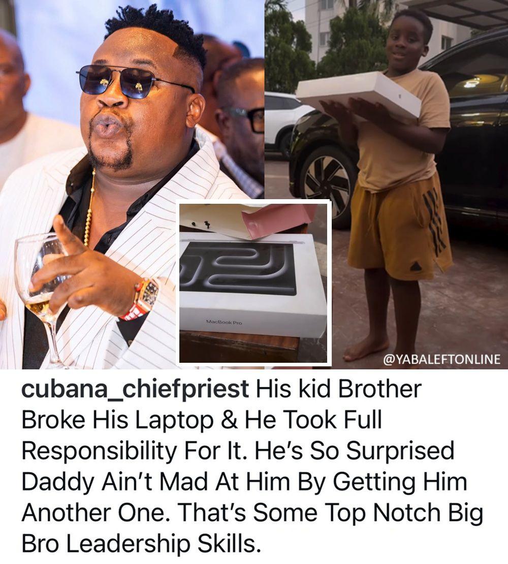 • Cubana Chief Priest gifts his son a new laptop after his younger brother broke his old one.