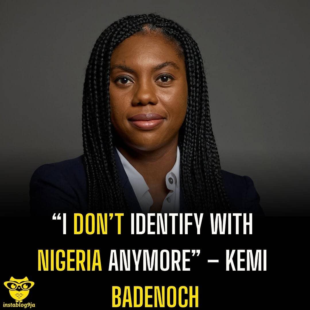 UK Conservative Party leader and Business Secretary, Kemi Badenoch, says she no longer identifies with Nigeria, the country of her heritage.