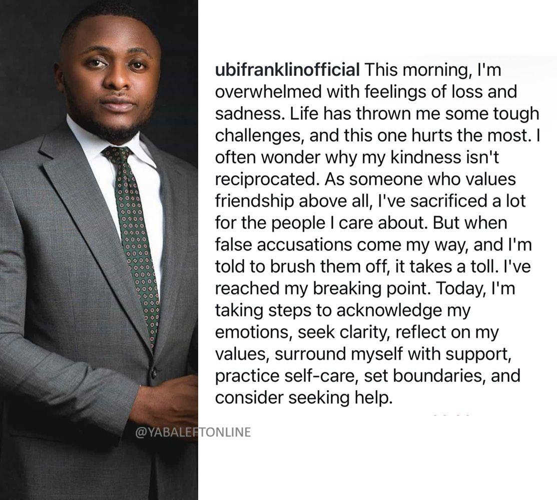 • "I often wonder why my kindness isn't reciprocated... I've reached my breaking point" - Ubi Franklin opens up.