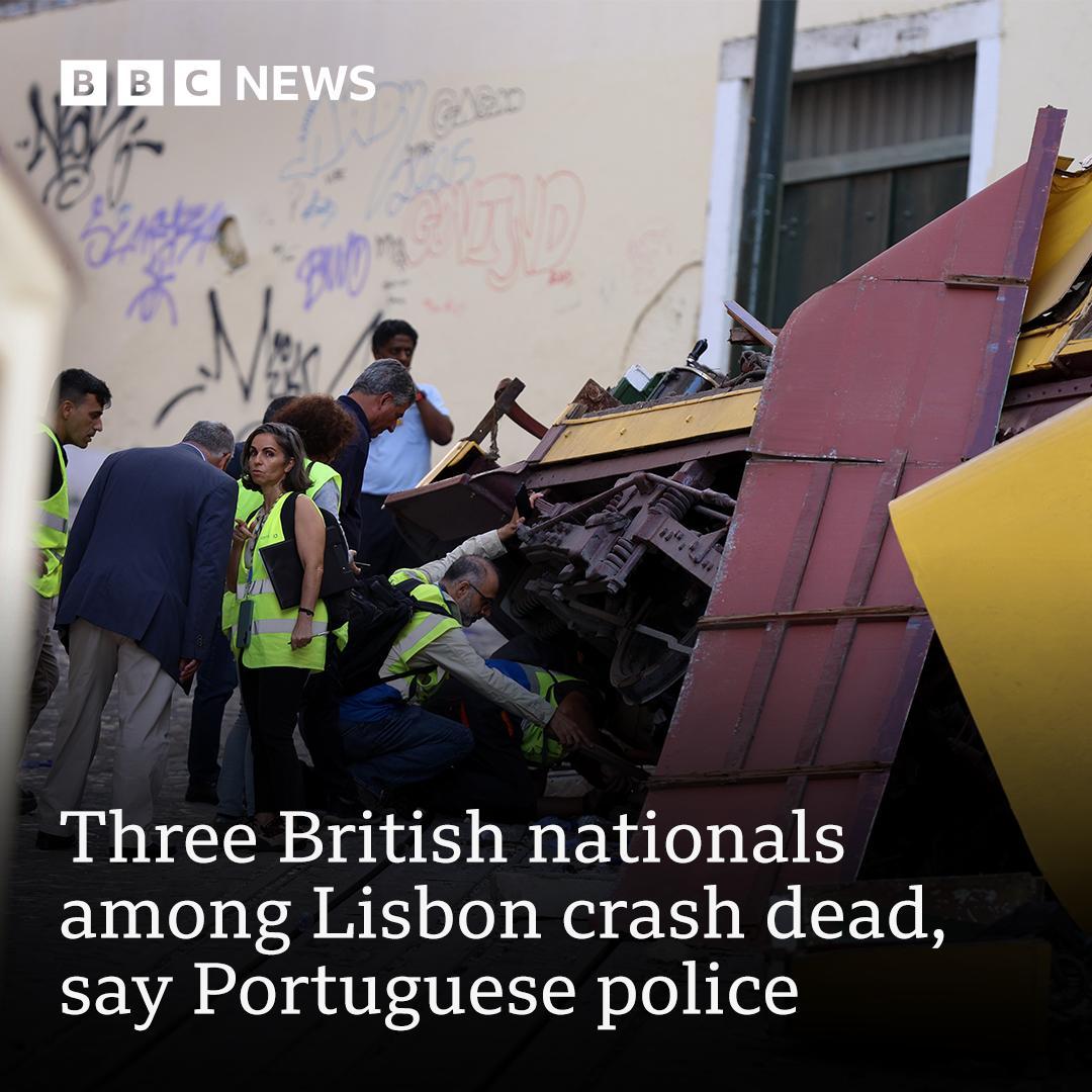 • Three British nationals were among those killed in the Lisbon funicular crash, Portuguese police say.