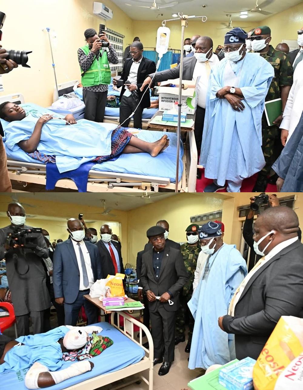 President Tinubu visits victims of the Benue attack at the hospital.