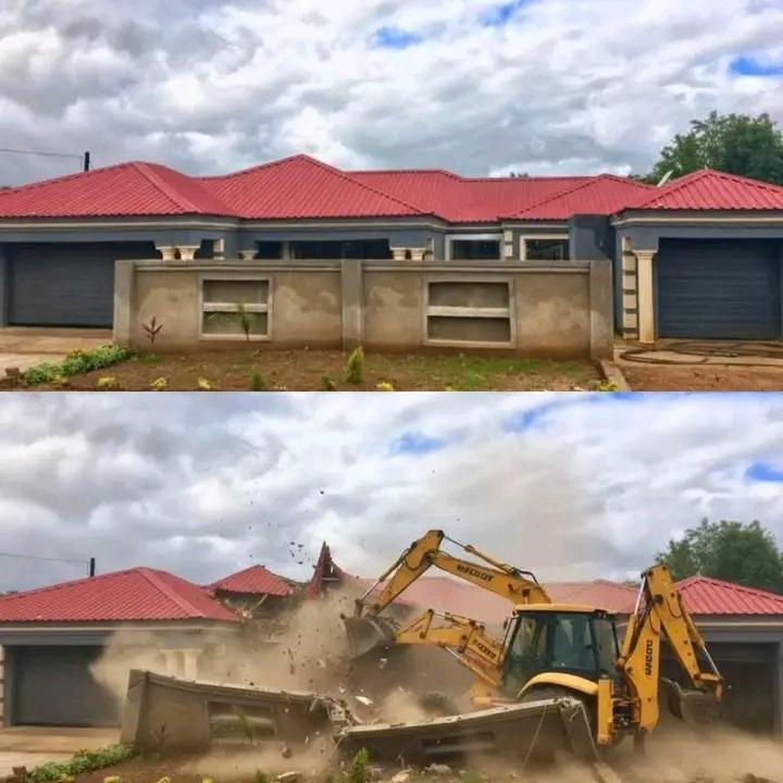 It is alleged that a Limpopo businessman hired a TLB to demolished a house he built for his side chick.It is alleged that he found out that his side chick was pregnant with another man.She is expecting a baby and the businessman couldn't allow the child to live in his house he built with his own money.He told the side chick to ask the father of her baby to make plans for their accomodation.